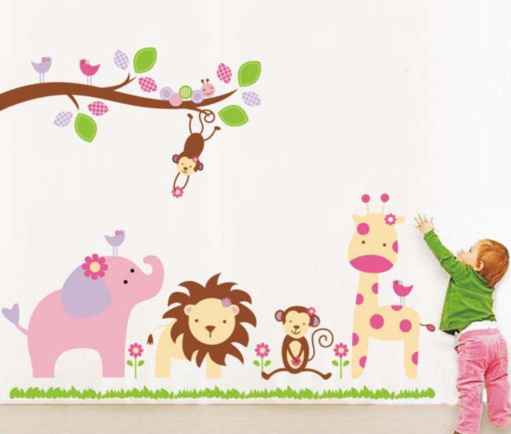 Decals Design StickersKart Wall Stickers Baby Cartoon Animal Kingdom Kids Room (Multicolor)