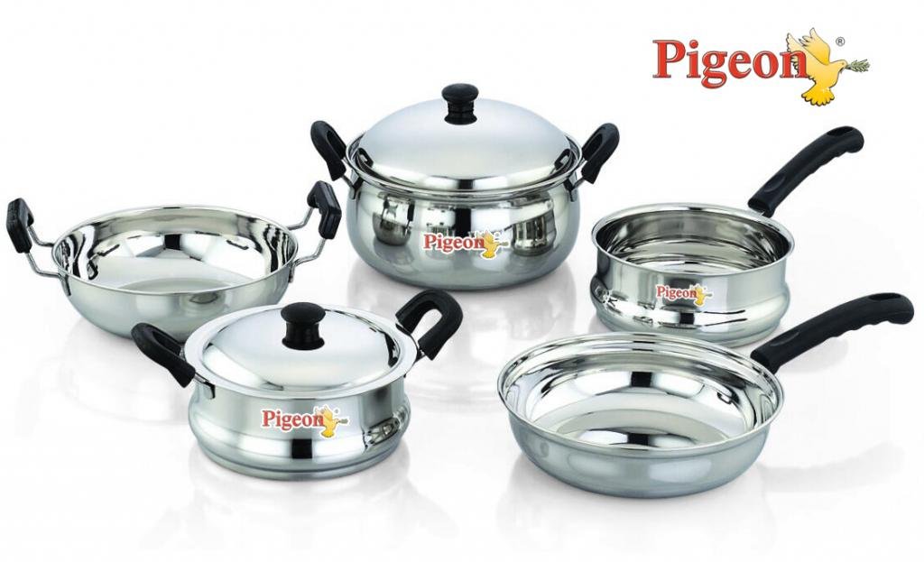 Pigeon Stainless Steel Cookware Set, 7-Pieces, Silver