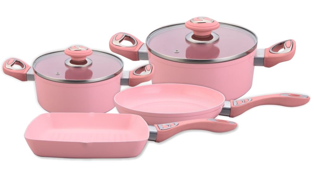 - Package Contents: 1-Piece Grill Pan (24cm), 1-Piece Frying Pan (24cm), 1-Piece Casserole (20cm), 1-Piece Casserole (24cm), 1-Piece Glass Lid (20cm) and 1-Piece Glass Lid (24cm)