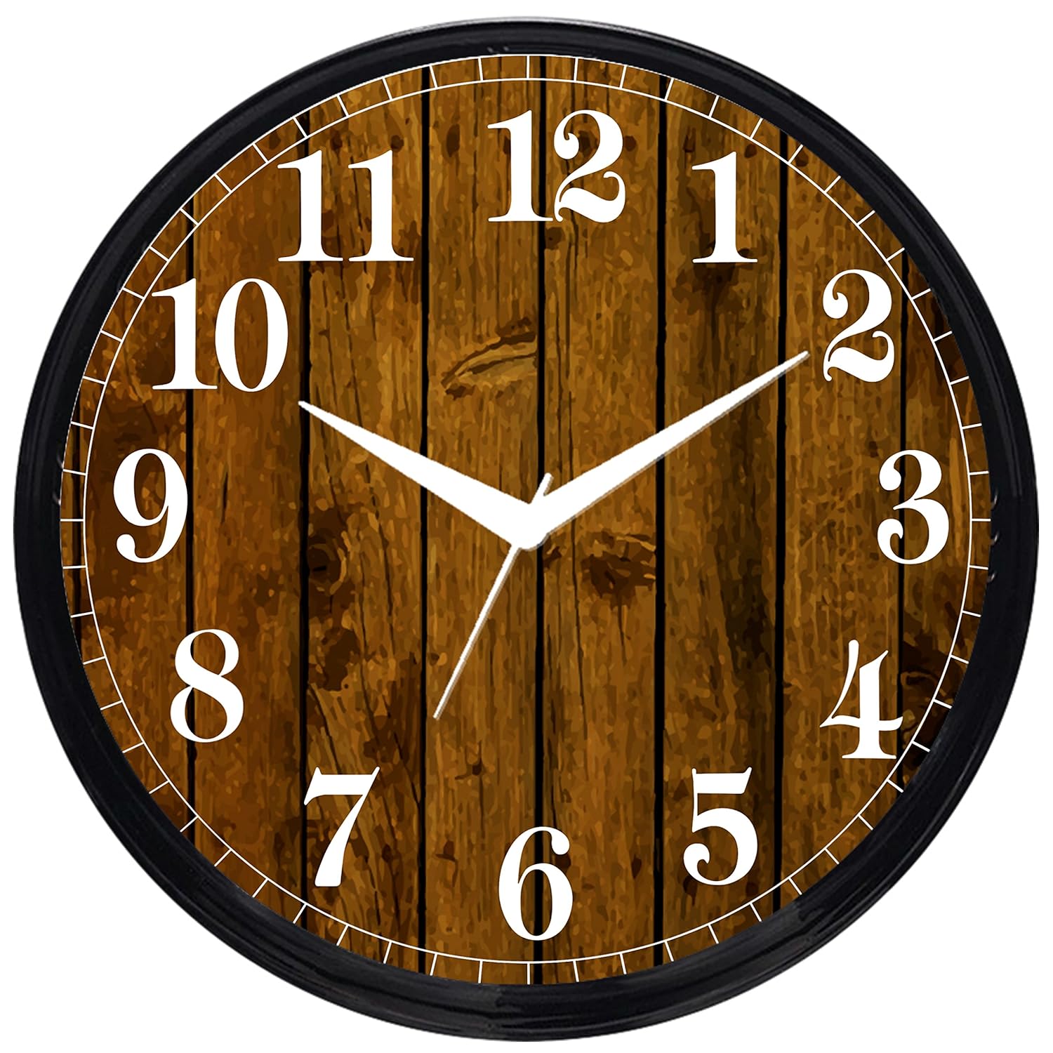 Cartoonpur Analog Round 11 Inch Wooden Look Wall Clock with Glass